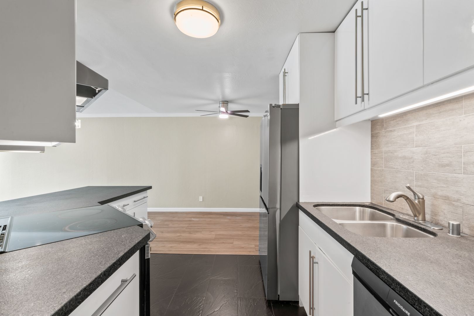 This 2Bed/1.5Bath (Square Feet 1,029) condo is ready for move-in! The kitchen features stainless steel appliances, ample cabinet storage, and a breakfast bar. Adjacent to the kitchen is a dedicated dining area, perfect for entertaining and enjoying home-cooked meals. The living room is spacious yet cozy, brightened by natural light and recessed lighting throughout. Both bedrooms are generously sized, with the primary bedroom including a custom walk-in closet. Enjoy your private patio, accessible from both bedrooms and the living room. The en-suite bathroom includes stone tile and granite countertops. The flooring throughout the living area includes luxury vinyl plank and stone tile, which makes cleaning a breeze!